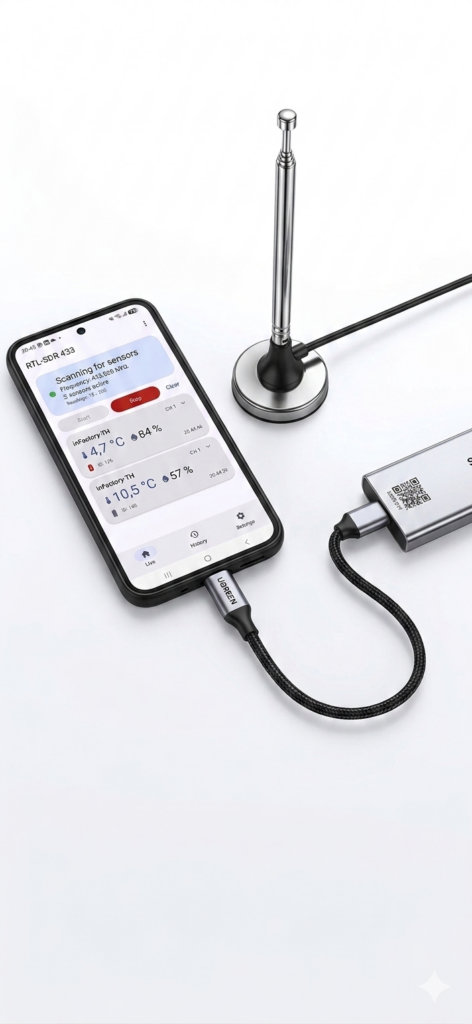 Turn your Android phone into a powerful 433 MHz sensor receiver — no PC, no root, no cloud.